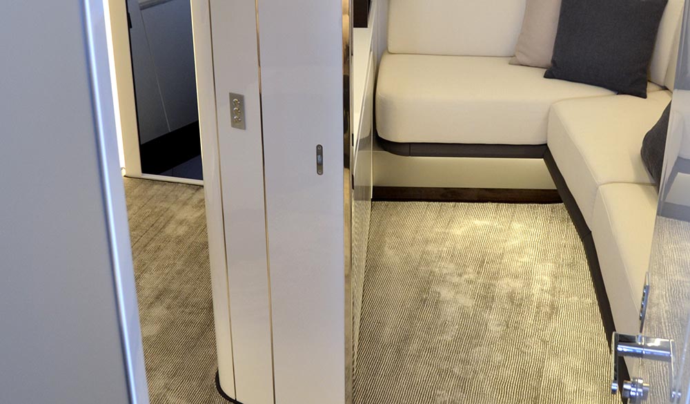 The Sherpa is available in three different versions: Owner’s Suite, Black Tie and Sun Lovers. This ninth model is part of the first version, characterized by a full beam owner’s suite.In this model, instead of the second cabin, there is a seating / lounge area that the owner can use for his own relaxation or that of his guests. The latter also have a day toilet available. The owner then wanted on board, confirming the convivial vocation of this model, many amenities, such as two refrigerators, an ice maker and a wine cellar.Sherpa wins thanks to its compact size which, however, does not limit the space dedicated to living the sea, such as the enormous aft deck of over 50 square meters which represents a real pieds dans l’eau terrace, designed to allow the owner and its guests to live a unique onboard experience, in direct contact with nature. All the spaces are in fact designed according to maximum conviviality.The ship has unparalleled storage space of 23,000 liters under the main deck. The solution of a flush deck for the main deck area allows you to stow everything and leave the entire deck free and easily equipped for the most diverse uses. This stowage space is able to accommodate tenders and jet skis at the same time and have additional space for water toys."The owner chose SHERPA for the splendid layout of the cockpit", explains the Owner Rep, "which allows him to have a very large living area to make the most of daily trips even with numerous guests on board. The choice of having the version with a cabin was made to maximize open spaces, while being able to sleep in the harbour. In addition, in Australia owners usually steer themselves so there is no need to have a crew cabin "