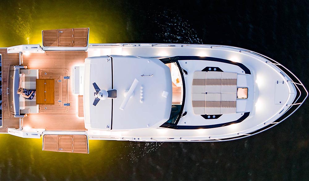 L’imbarcazione compatta da 45’ piedi trascende i confini prestabiliti fondendo perfettamente il comfort di uno yacht con le dimensioni, la rapidità e l’accessibilità di una barca sportiva.Mantenendo i dettagli più amati della 45 Sport con una convertibilità innovativa, ingegneria di altissimo livello e lussuose rifiniture.Il ponte principale contiene un grande e confortevole divano che può essere convertito in un tavolo con posti a sedere, rendendolo il luogo ideale per prendere il sole in completo relax. Il timone è completamente focalizzato sulla funzionalità più che sul design pur mantenendo il livello di lusso che ci si aspetta da Ocean Alexander. Le prese d’aria A/C e i sedili a triplo rinforzo assicurano che tutti al timone stiano comodi e al sicuro.La spaziosa cucina all’aperto sulla 45DC è perfetta per uno spuntino veloce o per cucinare il pescato del giorno. I servizi includono un lavandino in acciaio inossidabile Scandvik, un frigorifero U-Line, stoviglie Kenyon e armadi in vetroresina completamente chiusi che forniscono un sacco di spazio. L’ampio salone è perfettamente rifinito con mobili in legno massello, e dispone di un tavolo di noce hi-low e un divano a forma di U che si trasforma in un comodo letto.Più di 400 varianti e opzioni di customizzazione rendono la nave davvero personalizzabile in base alle proprie esigenze, rendendola il compromesso perfetto tra lusso e funzionalità.