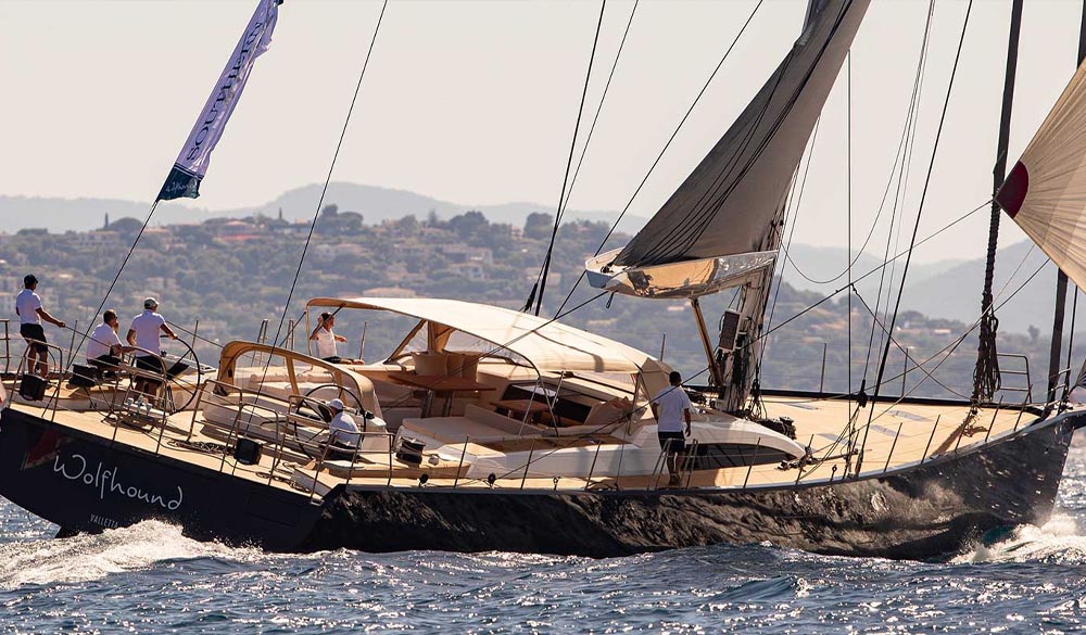 È stato commissionato da un armatore orientato alle prestazioni e molto attento alle tendenze del mercato.La nave presenta sezioni di poppa generosamente ampie e uno specchio di poppa aperto. Questi assicurano un’ampia area coperta e abbondanti volumi interni, elementi che sono un vero plus per qualsiasi performance cruiser.All’interno l’atmosfera è ordinata e pulita. Il design del salone rialzato di abbellisce di un tetto di tuga lucido con soffitti alti e luci soffuse. Non manca la presenza della luce naturale, che si riversa all’interno attraverso le finestre panoramiche ed i grandi oblò dello scafo.Gli interni dell’SW105 Wolfhound sono caratterizzati dalla disposizione a prua della cabina armatoriale più popolare di Southern Wind Shipyard, con tre comode cabine per gli ospiti a centro barca, gli alloggi per l’equipaggio e la cucina a poppa. La zona dell’equipaggio è un ambiente di lavoro efficiente per cinque / sei persone e comprende una cabina del Capitano con bagno privato.Wolfhound è il risultato di una proficua collaborazione tra Southern Wind, Nauta Design e Farr Yacht Design, ed è uno tra gli yacht da crociera più veloci e confortevoli in circolazione.Attualmente è disponibile per charter in Italia e nel Sud della Francia, il prezzo è di 75.000 euro a settimana, spese escluse.